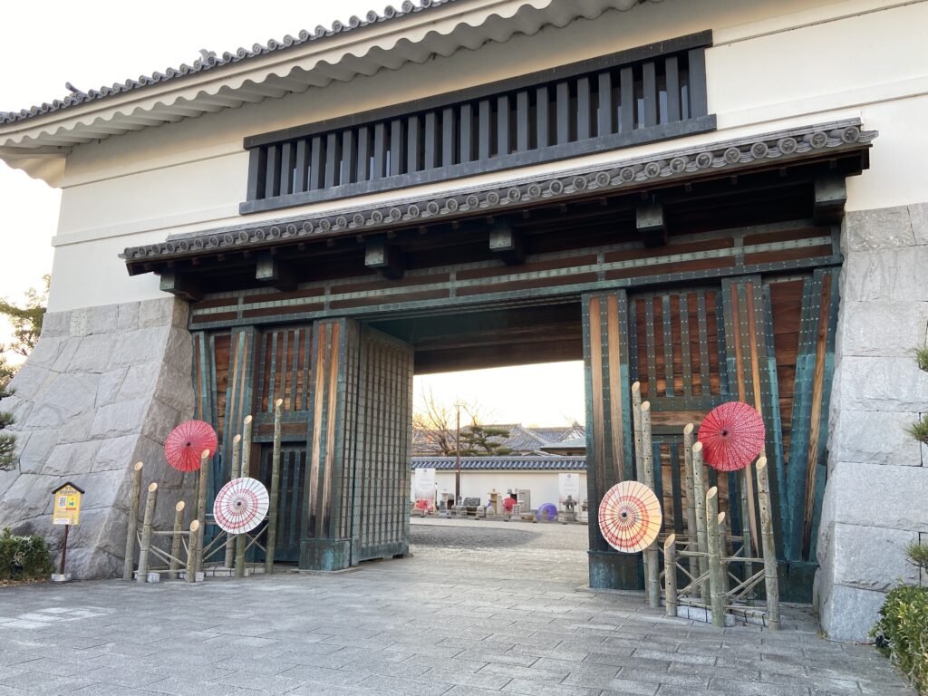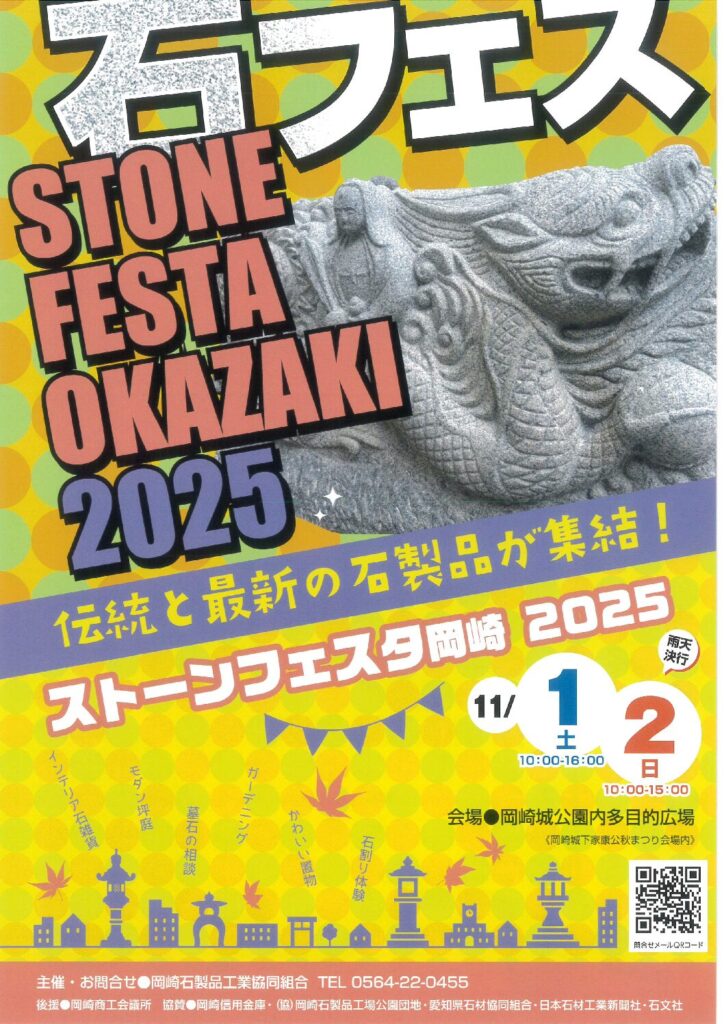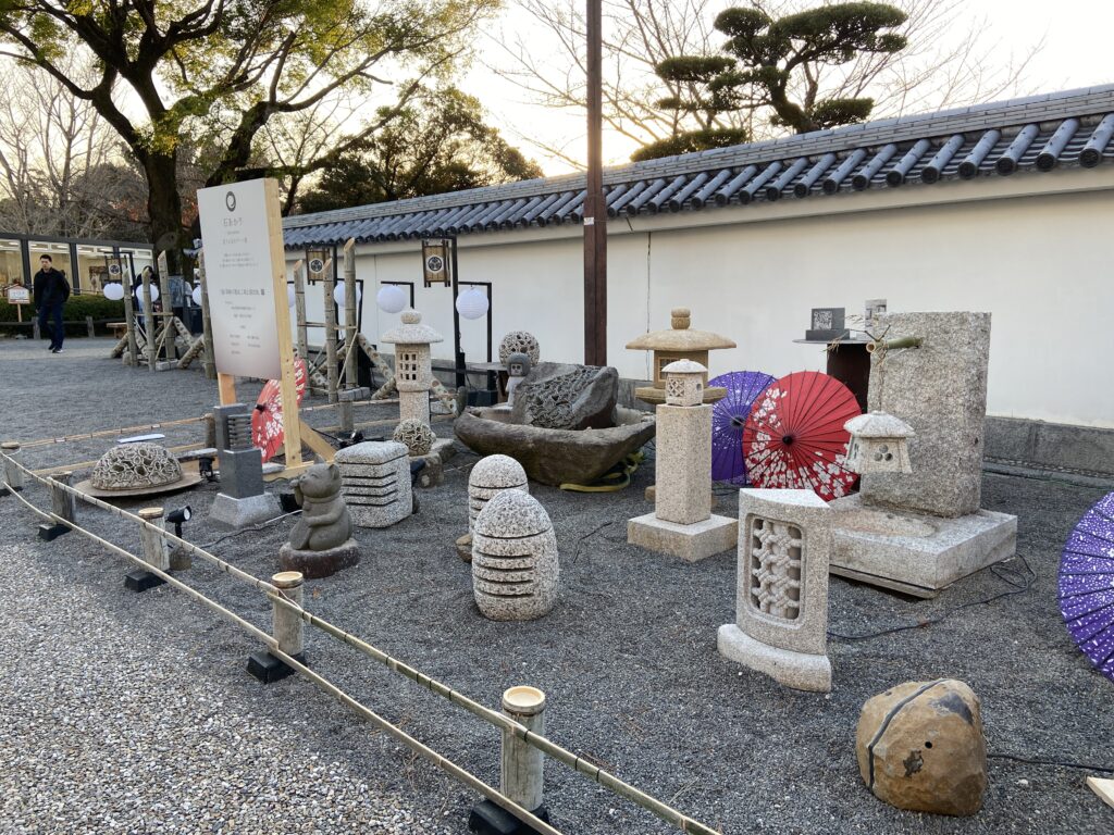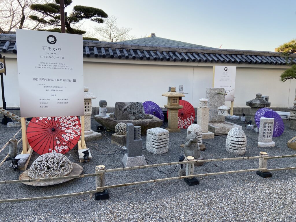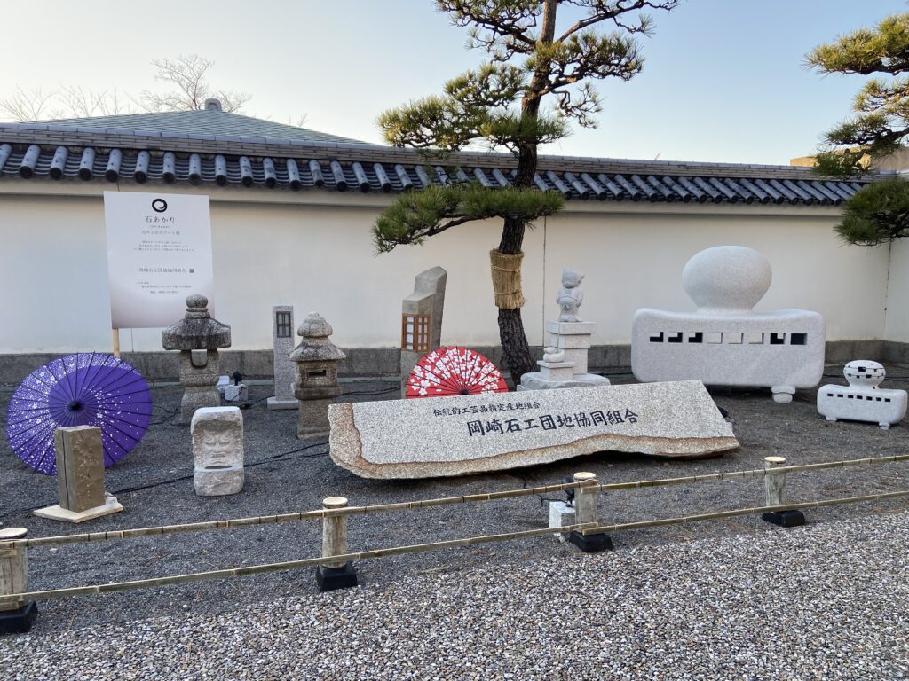 岡崎城公園 大手門の奥で 岡崎にある三つの石屋組合で石の製品を展示しております。
